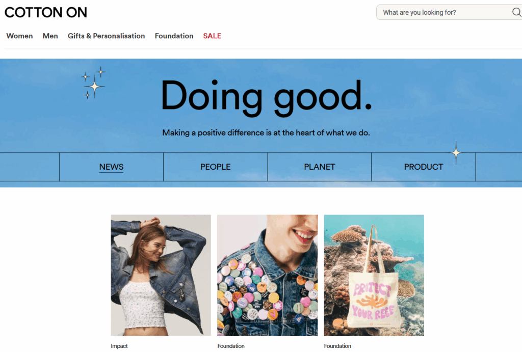 I found myself drawn to Cotton On while searching for brands making genuine sustainability efforts without the prohibitive price tags that often accompany ethical fashion. Their digital presence welcomes you not just with product galleries but with purpose statements.